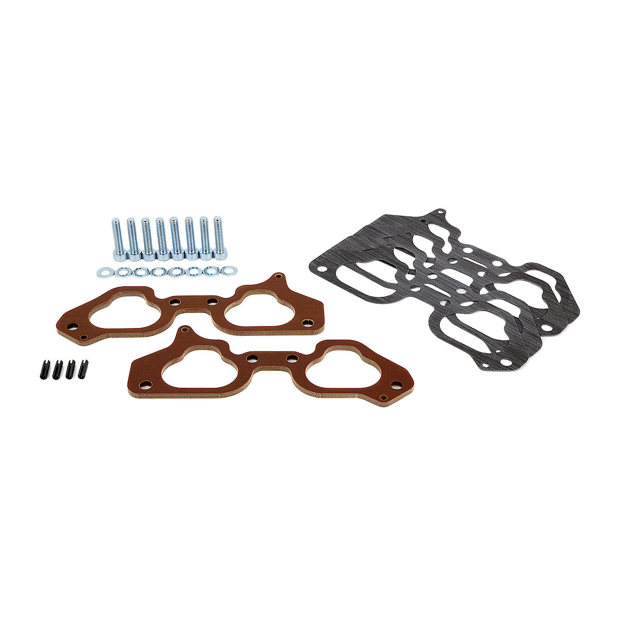 IAG Performance is proud to offer 5mm phenolic grade CE spacers for your Subaru 2.0L and 2.5L engine. This is a simple, cost-effective way to maximize the power of your current set-up. The 8mm spacer offers superior thermal insulation and also aids in raising the intake manifold. This can be useful when plumbing custom intercooler piping or rotating the intake manifold. Why it works: The concept behind the phenolic spacer is simple: isolate the heat produced by the engine from the entire intake tract. This results in a cooler path for the intake air. This leads to a lower and more stable intake air temperature (IATs). Lower IATs mean you have the capability to make more power with your current set-up. IAG phenolic spacers are engineered and manufactured at our facility in Westminster, MD. The spacer was designed using the factory Subaru head. Each spacer is then CNC machined from a single piece of phenolic. We include 4 custom-made nitrile gaskets with your phenolic spacers: one to go on each side of the spacer. Our intake manifold gaskets are not layered with paper like the factory gasket. They are engineered to stay intact when removed from your cylinder head. This prevents you from having to clean up residue that sticks to the cylinder head after years of use. Also included are longer stainless steel spring pins. The pins aid in aligning the spacer/gasket with the cylinder head. They are longer to account for the thicker spacer.