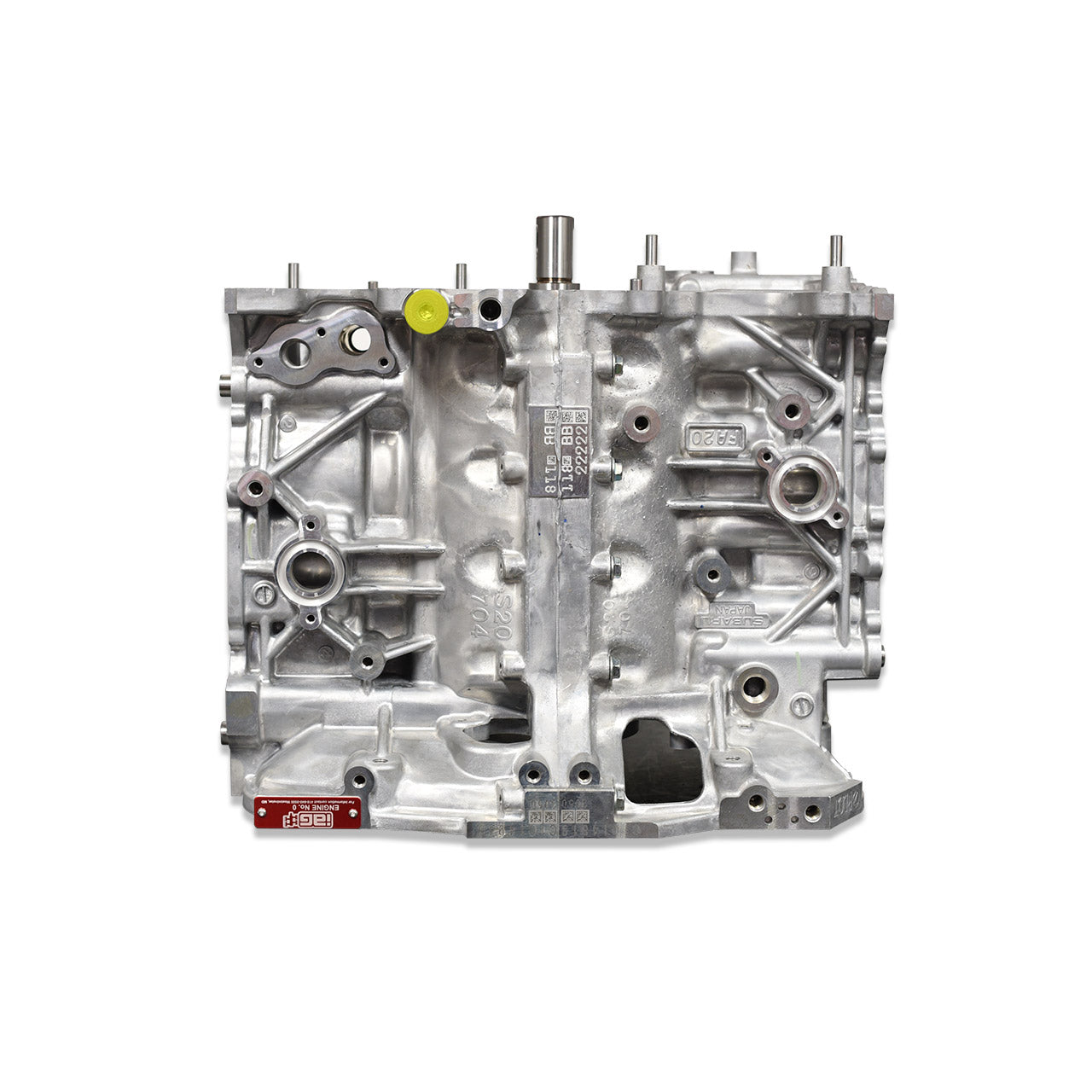 The IAG 800 Short Block is designed for modified FA20 Subaru BRZs or FT86s that need a stronger short block to support increased cylinder pressures created by larger aftermarket turbochargers. The IAG 800 short block features our proprietary closed-deck cylinder support system to strengthen the OEM FA20 cylinder walls. The short block is fitted with IAG Spec H-Beam forged connecting rods. Head gasket sealing is handled with the addition of an O-ring and 1/2" head studs for additional compression of the head gasket. These upgrades are ideal for those seeking to get the most out of their full bolt-on and upgraded turbo BRZs. The IAG 800 short block starts with new Subaru FA 2.0L engine case halves that are machined for improved oiling. Then IAG machines the case halves assembled together in our Haas VF-4SS CNC mill to accept the IAG Closed Deck Inserts that transform the block into a solid deck. The unique inserts feature small passages that allow needed coolant flow to the deck surface. The case halves are then CNC machined with O-ring receiver grooves around the bore surface as well as drilled and tapped to accept 1/2" head studs that greatly reduce head gasket failure during high cylinder pressure scenarios. Next, the short block is Deck Plate bored and honed that to 86.1mm on our in-house Sunnen SV-30 cylinder hone. IAG's in-house honing process is able to set piston to wall clearances tighter for a quieter running engine. The short block is measured and assembled using a new 2020 Subaru FA20 crankshaft that is matched to ACL or King main bearings. IAG-Spec H-Beam rods with ARP2000 rod bolts are utilized, along with King or ACL rod bearings. The case halves are sealed with new OEM case bolts and sealant. Finally, IAG-Spec 86.1mm forged pistons are installed, along with an OEM oil plug finishing off the short block.