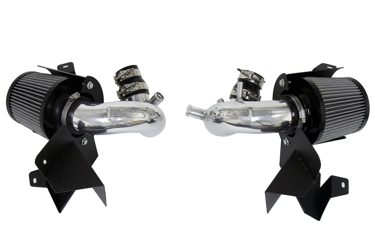 HPS Performance Air Intake Kits are designed with style and performance in mind. This HPS Performance Air Intake Kit replaces the factory intakes and air filter housings with two 2.75" custom mandrel-bent aluminum tubes and two heavy duty powder coated heat shields designed to maximize the performance of your vehicle. It includes two reusable high-flow cotton air filters to provide maximum airflow to increase your engine's output by up to 12.1 horsepower and 12.7 lb-ft. of torque for power you can feel through improved throttle response and acceleration. This kit includes both HPS 100% stainless steel T-bolt clamps and 3-ply reinforced silicone couplers that are engineered to withstand the toughest driving conditions. HPS Performance Air Intake Kits are designed and tested using the latest technology to ensure the best performance and fitment.