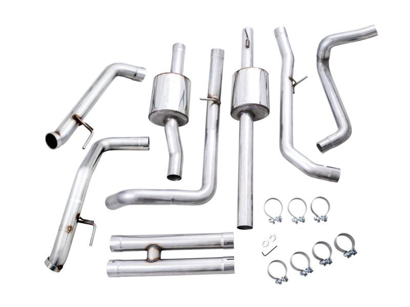 AWE Tuning 22-23 GMC Sierra 1500 AT4X 6.2L 0FG Catback Split Dual (Flat Bumper) - Bashguard(No Tips)
