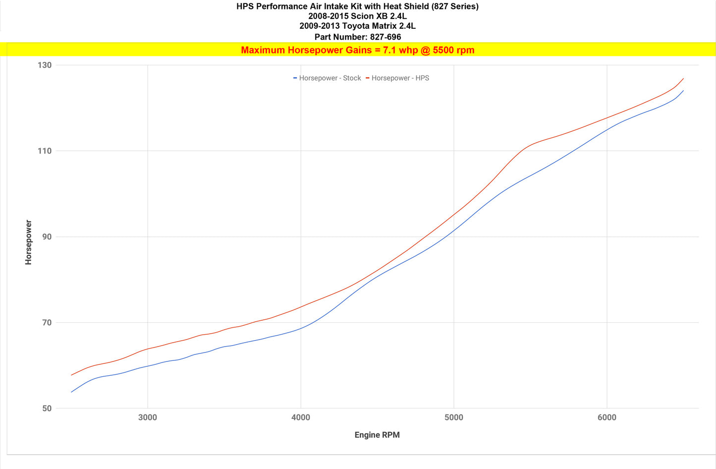 HPS Performance 827-696BL Gain 7.1 hp & 8.4 lb-ft. of tq, improve throttle response, high flow air filter.