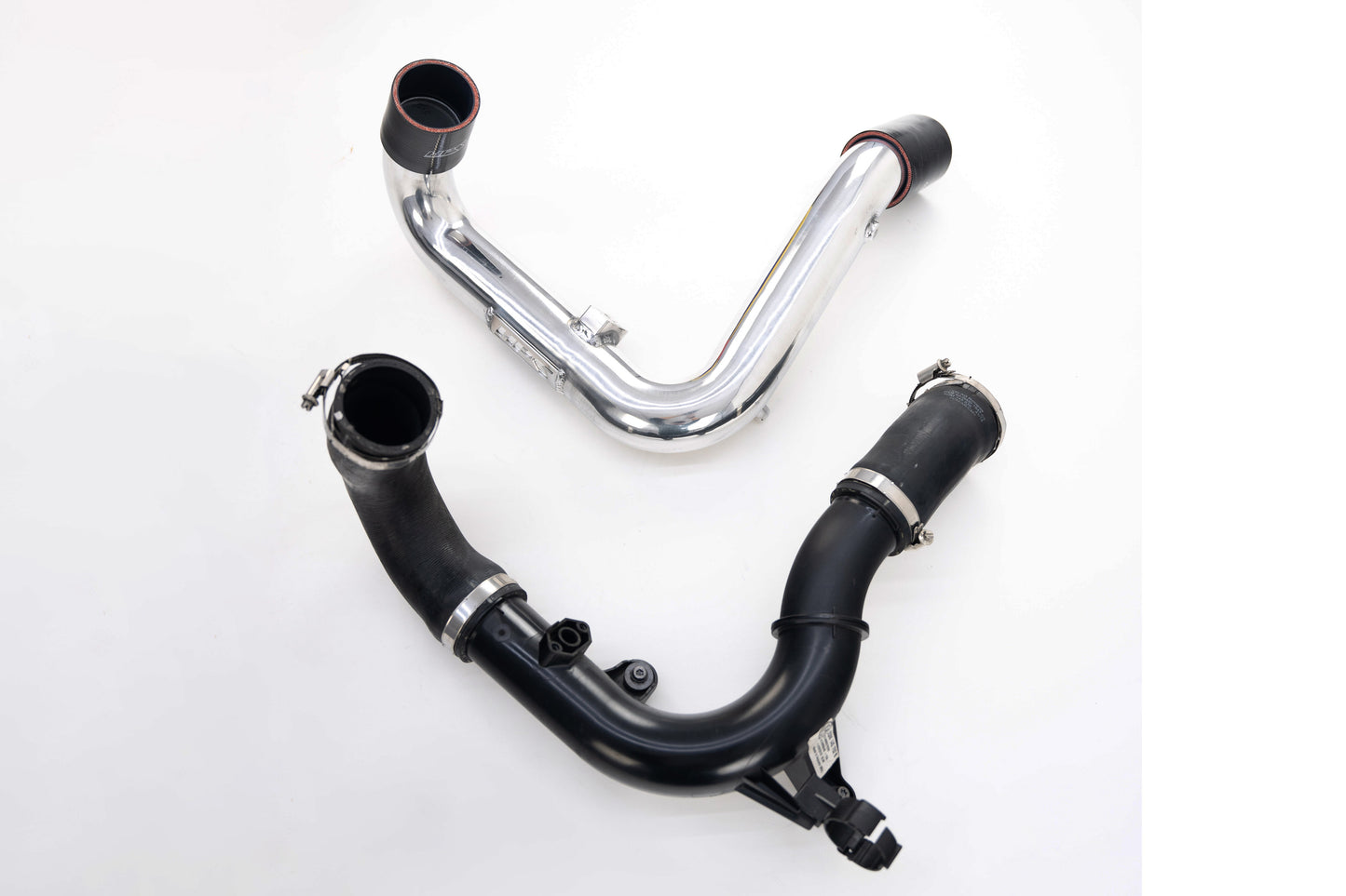 Description_MKT | Improve throttle response and acceleration with this HPS Performance Hot Side Intercooler Pipe Kit that optimizes airflow to generate additional power without re-tuning the ECU. This kit replaces the stock plastic right side charge pipe and rubber boots with 2.5" custom mandrel-bent 16-gauge 6061 aluminum tubes, signature oil-resistant HPS 4-ply reinforced silicone hoses, and 100% stainless steel embossed hose clamps. The rolled pipe ends prevent couplers from popping off under boost. This kit also features a replacement turbo outlet muffler that utilizes the factory O-ring. Reduce the risk of boost leaks and get the most out of this turbocharged vehicle. REMARK: Does NOT fit models equipped with 7-DSG Transmission. |