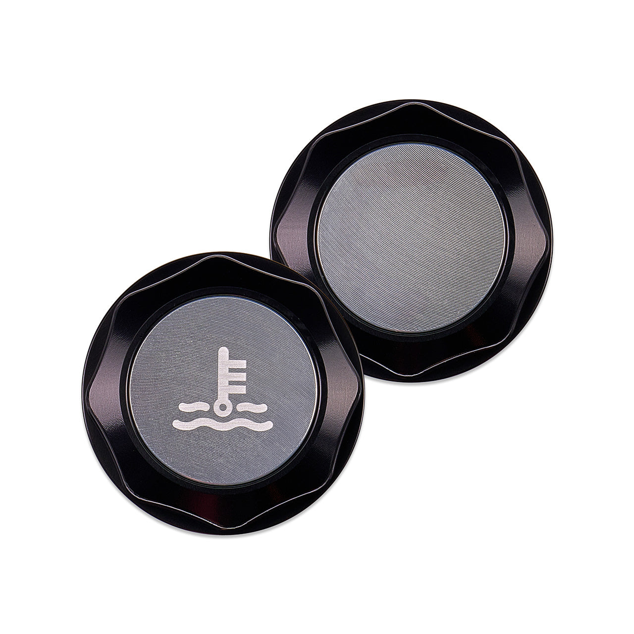 Get rid of the unattractive OEM yellow cap and upgrade your engine bay with the IAG Revolve Coolant Reservoir Cap. Designed to fit 2002-2024 WRX, 2004-2021 STI, 2005-2009 LGT, 2004-2008 FXT and 2013-2024 BRZ Subaru models, this stylish aluminum cap provides an exact fit for the factory reservoir while enhancing the appearance of your engine bay with a refined custom appearance. IAG’s Revolve Coolant Reservoir Cap is a major upgrade over Subaru’s factory plastic cap, which is prone to wear and failure due to the extreme temperatures under the hood. CNC-machined at our facility in Maryland from 6061 billet aluminum, this cap is lightweight, durable and strong. It features a sleek black anodized finish that is resistant to corrosion while giving your engine bay a high-end appearance.