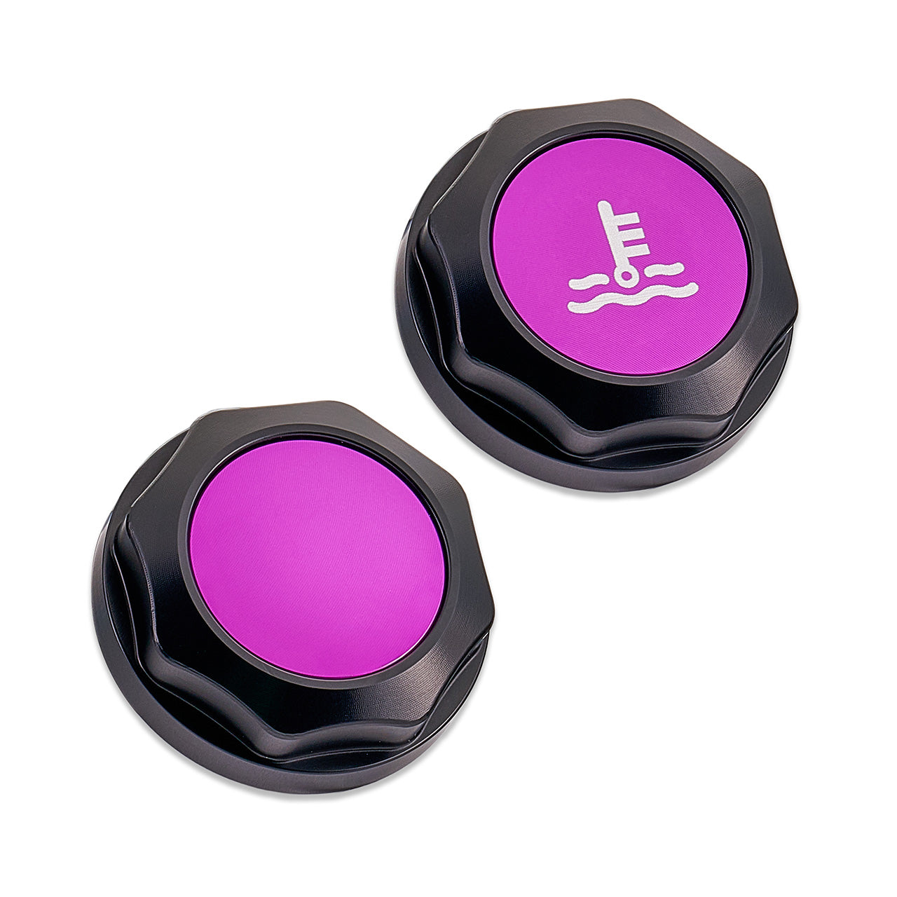 Get rid of the dull yellow plastic under your Subaru’s hood and upgrade your engine bay with the IAG Revolve Engine Bay Dress-Up Cap Kit. Compatible with 2008-2014 WRX, 2008-2014 STI, 2005-2009 LGT Subaru models, these attractive anodized caps replace your factory oil, brake, clutch, coolant, washer, and power steering caps with a more refined look—while maintaining a secure, factory-quality seal. At the center of each cap is a sleek anodized aluminum purple insert. Each insert is laser-etched with the appropriate universal symbol for each fluid system—oil, brake, clutch, coolant, washer, and power steering, but can be flipped to show the solid color. The inserts can be easily swapped in seconds, thanks to the accessible design inside each cap—just use a small tool to pop the insert out and choose your preferred side.