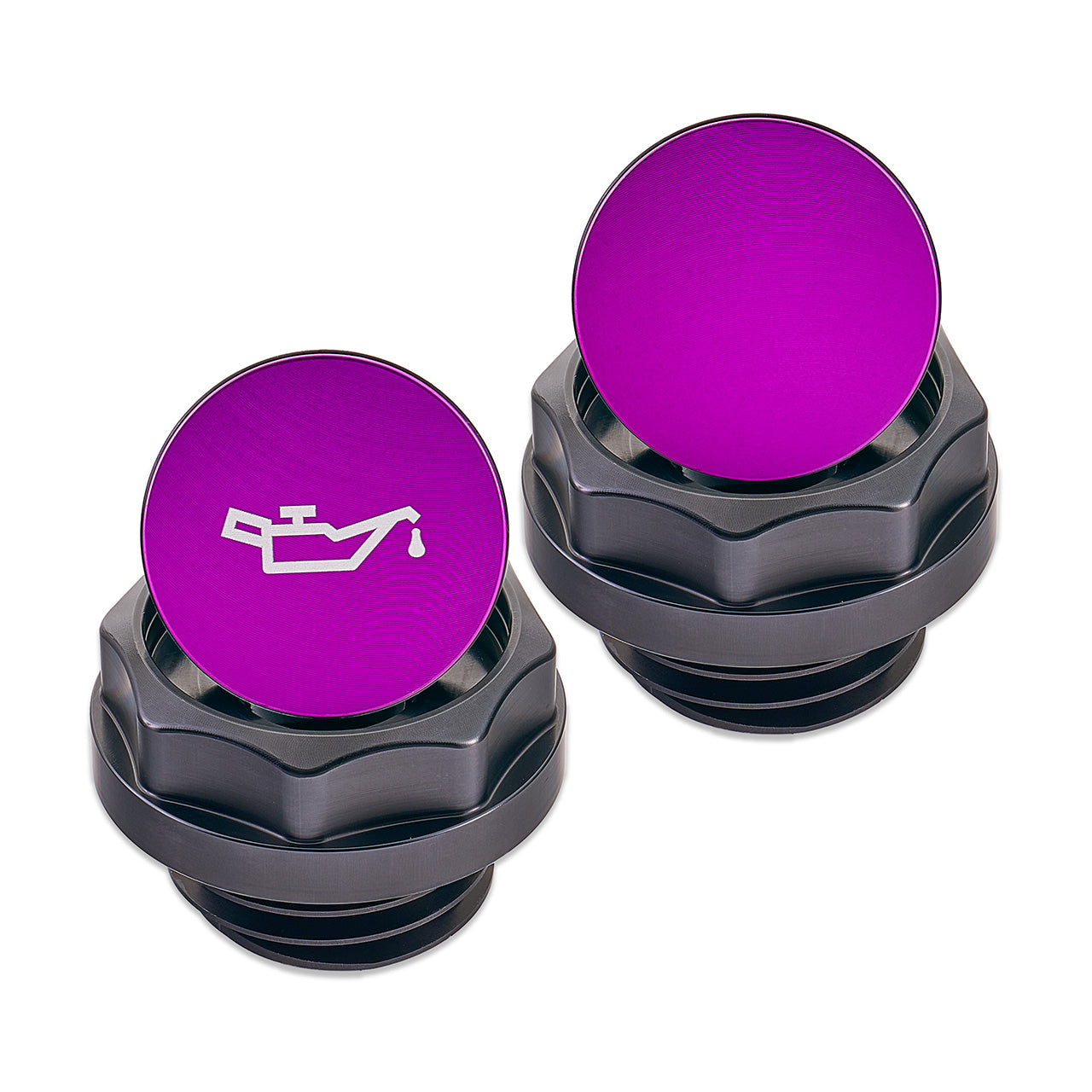 Get rid of the dull yellow plastic under your Subaru’s hood and upgrade your engine bay with the IAG Revolve Engine Bay Dress-Up Cap Kit. Compatible with 2022-2024 WRX and 2013-2024 BRZ Subaru models, these sleek anodized caps replace your factory oil, brake, clutch, coolant and washer caps with a more refined look—while maintaining a reliable, factory-quality seal. At the center of each cap is a sleek anodized aluminum purple insert. Each insert is laser-etched with the appropriate universal symbol for each fluid system—oil, brake, clutch, washer and coolant, but can be flipped to show the solid color. The inserts are easy to swap in seconds, thanks to the accessible design inside each cap—just use a small tool to pop the insert out and choose your preferred side.