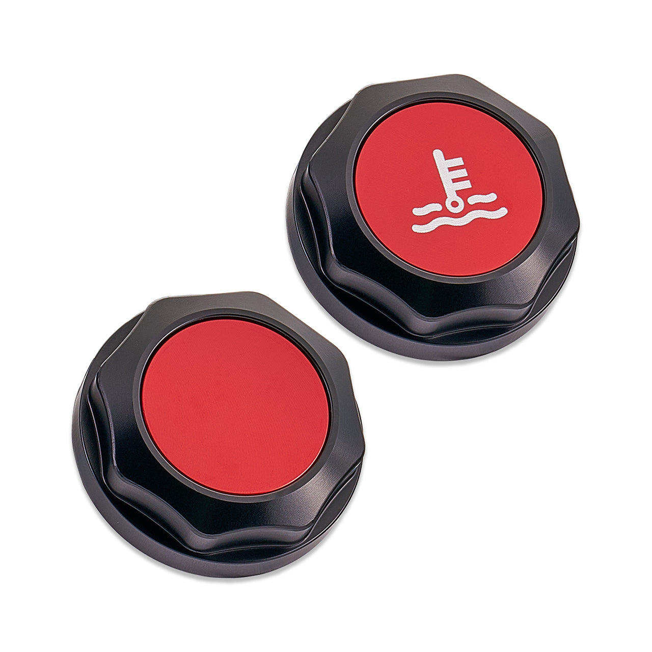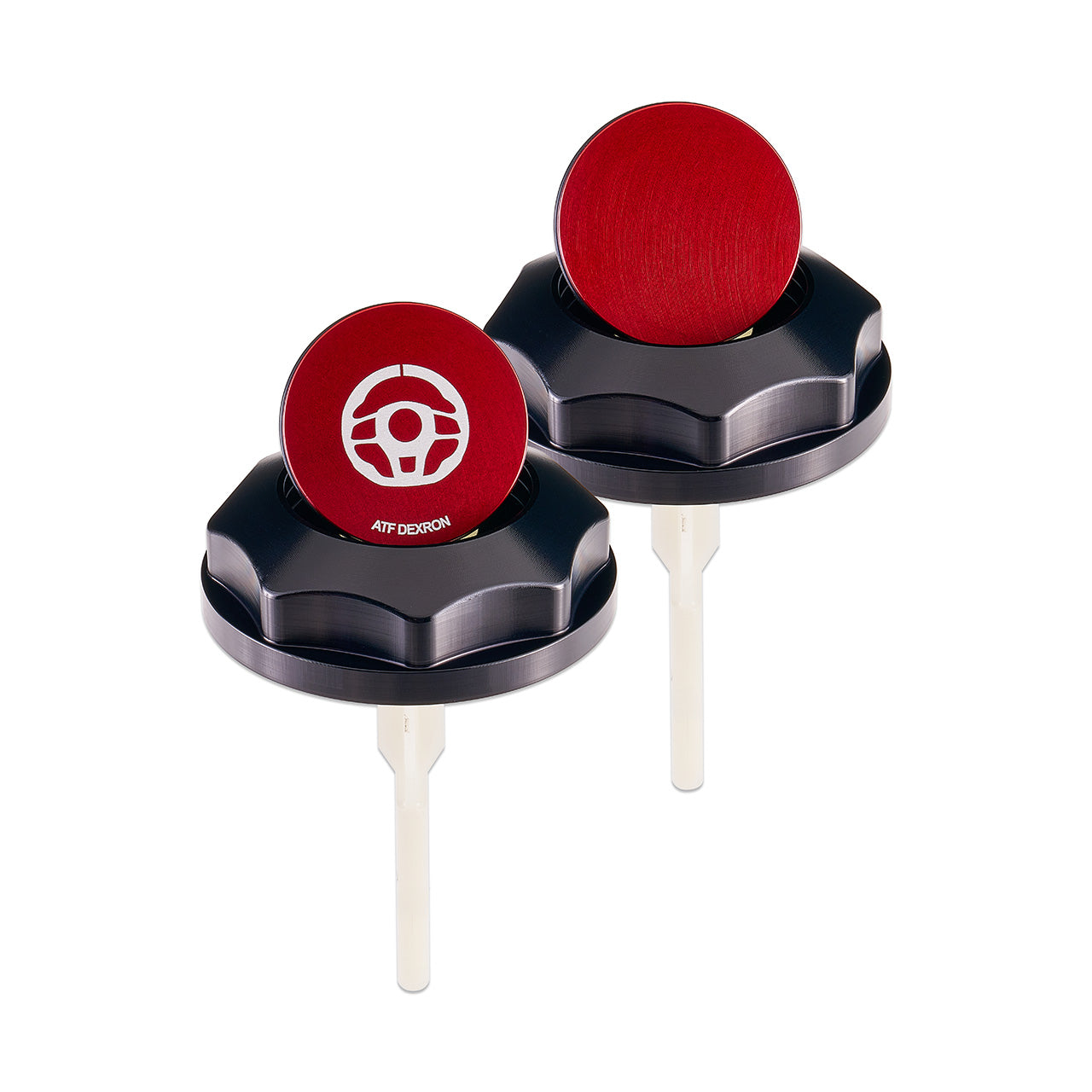 Get rid of the dull yellow plastic under your Subaru’s hood and upgrade your engine bay with the IAG Revolve Engine Bay Dress-Up Cap Kit. Compatible with 2008-2014 WRX, 2008-2014 STI, 2005-2009 LGT Subaru models, these attractive anodized caps replace your factory oil, brake, clutch, coolant, washer, and power steering caps with a more refined look—while maintaining a secure, factory-quality seal. At the center of each cap is a sleek anodized aluminum red insert. Each insert is laser-etched with the appropriate universal symbol for each fluid system—oil, brake, clutch, coolant, washer, and power steering, but can be flipped to show the solid color. The inserts can be easily swapped in seconds, thanks to the accessible design inside each cap—just use a small tool to pop the insert out and choose your preferred side.