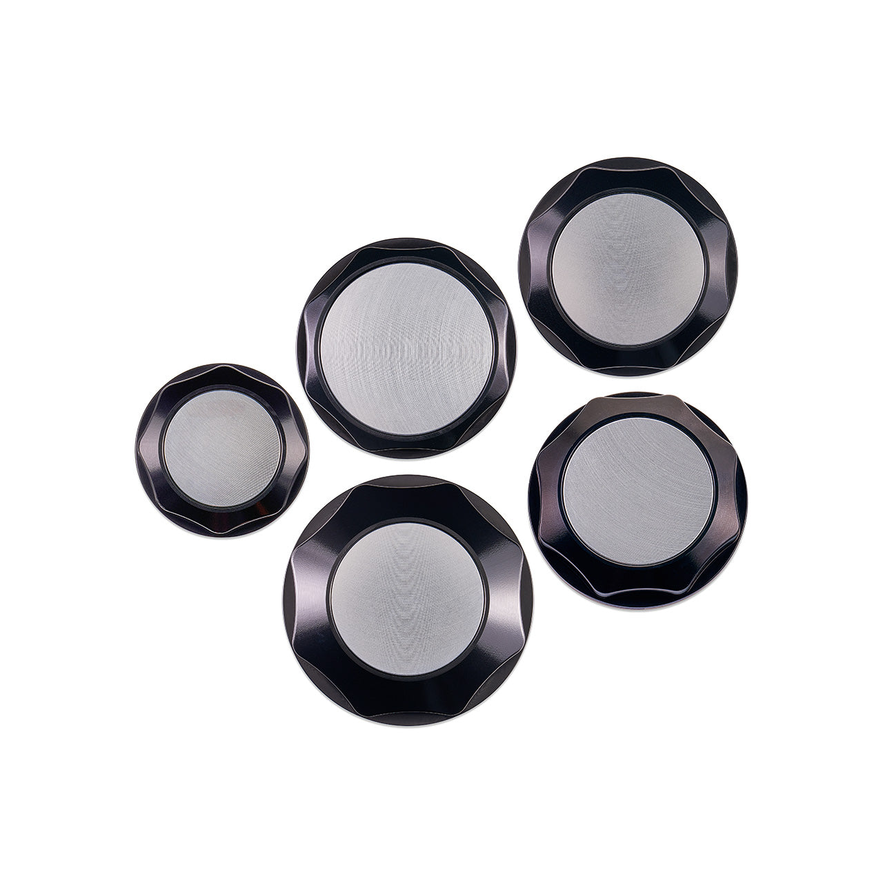 Get rid of the dull yellow plastic under your Subaru’s hood and upgrade your engine bay with the IAG Revolve Engine Bay Dress-Up Cap Kit. Compatible with 2015-2021 STI Subaru models, these sleek anodized caps replace your factory oil, brake, power steering, coolant and washer caps with a more refined look—while maintaining a reliable, factory-quality seal. At the center of each cap is a sleek anodized aluminum silver insert. Each insert is laser-etched with the appropriate universal symbol for each fluid system—oil, brake, power steering, washer and coolant, but can be flipped to show the solid color. The inserts are easy to swap in seconds, thanks to the accessible design inside each cap—just use a small tool to pop the insert out and choose your preferred side.