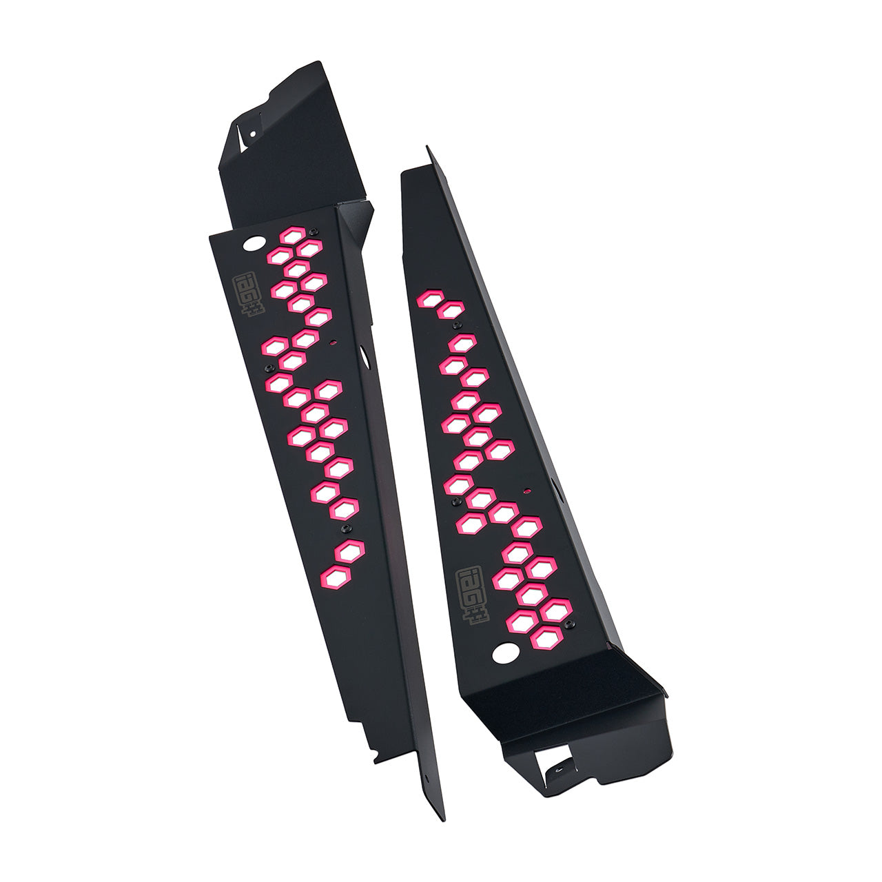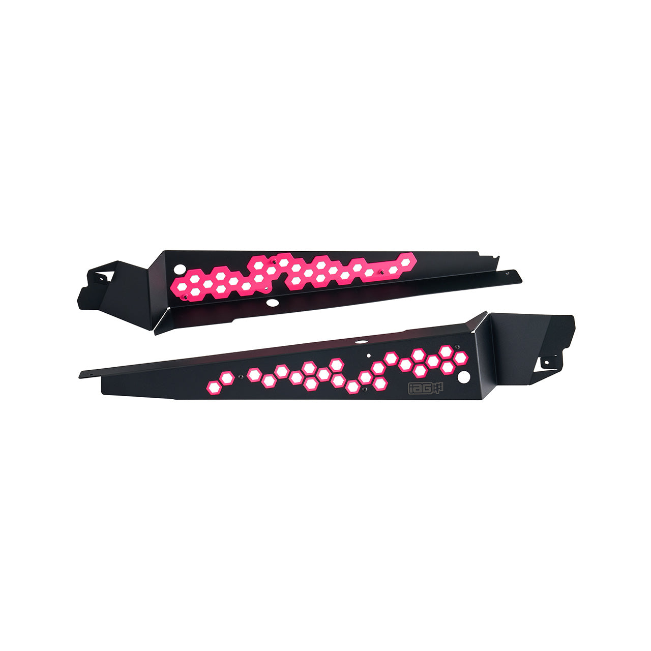 Transform your Subaru’s engine bay with the IAG VA Fender Shrouds. Designed specifically for the 2015-2021 WRX and STI, these precision-fit aluminum covers eliminate the factory fender gap while adding extra ventilation for temperature-sensitive components near the engine compartment. This easy upgrade delivers a sleek, custom look with practical benefits. The IAG Fender Shrouds combine strength, style, and function in one clean upgrade. Laser cut and formed from lightweight 5052 aluminum at our Westminster, Maryland facility, they’re tougher than OEM plastic and built to last. The outer shroud is powder-coated black for a clean, durable finish, while a second color-coated aluminum plate sits underneath, lining up perfectly with the hexagon cutouts. This design adds a subtle but stylish color accent along the hex edges. Unlike other shrouds on the market, the IAG Fender Shrouds cover the entire fender gap, including the area near the hood hinges.