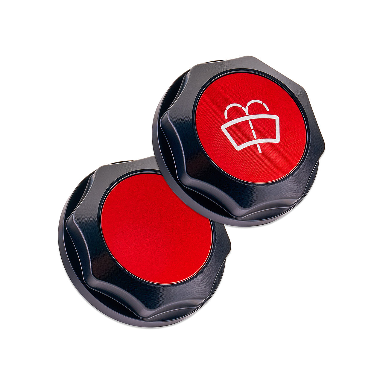 Get rid of the dull yellow plastic under your Subaru’s hood and upgrade your engine bay with the IAG Revolve Engine Bay Dress-Up Cap Kit. Compatible with 2015-2021 STI Subaru models, these sleek anodized caps replace your factory oil, brake, power steering, coolant and washer caps with a more refined look—while maintaining a reliable, factory-quality seal. At the center of each cap is a sleek anodized aluminum red insert. Each insert is laser-etched with the appropriate universal symbol for each fluid system—oil, brake, power steering, washer and coolant, but can be flipped to show the solid color. The inserts are easy to swap in seconds, thanks to the accessible design inside each cap—just use a small tool to pop the insert out and choose your preferred side.