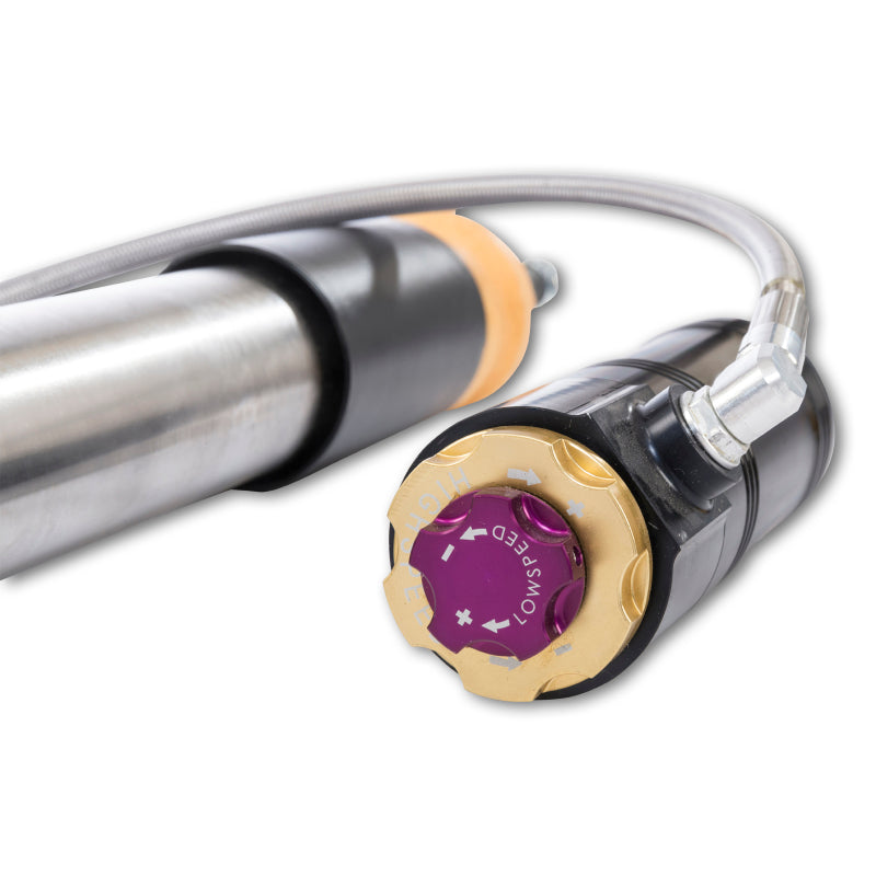 Using the Nordschleife as it's testing grounds and the 7-post rig, KW developed it's V4 Clubsport coilover kit. Wheel loads, vehicle weight and chassis reinforcements (increased body stiffness) can all be taken into consideration with Adjustment -capabilities of the V4 Clubsport. The KW Clubsport coilovers combine KW's high-end racing technology -with maintenance-free KW OEM quality components. Designed to provide you the ideal product to utilize the full potential of your sports car during autocross, track days, high performance drivers education (HPDE) courses, club racing, and is tested rigorously on race tracks such as the Nurburgring Nordschleife. Race teams rely on KW's racing expertise and experience for their vehicle setup. This same championship winning pedigree is mirrored in the development of each one of the KW Clubsport coilover systems. Similar to the KW Competition suspension used in international motorsports, the KW V4 Clubsport coilover kit allows fine tuning of the compression damping separately in the low-speed and high-speed range. The click adjustments of the TVCLH-A valve technology -ake for easy Adjustment -directly on the reservoir. You can modify the low-speed compression damping with 6 precise clicks with the purple low speed Adjustment -ial and directly beneath it the golden Adjustment -heel provides an additional 14 precise clicks of high speed compression adjustment. In addition, the TVR-A technology -provides 16 clicks to noticeably adjust the rebound damping independently of the compression damping. If you would like to adjust the KW V4 Clubsport coilover kit it can easily be adjusted for more comfort or to an alternative setup for a new race track. The KW V4 Clubsport benefits from the same motorsports technology -hat has proven its endurance with multiple overall wins at the ADAC Zurich 24h Nurburgring race.