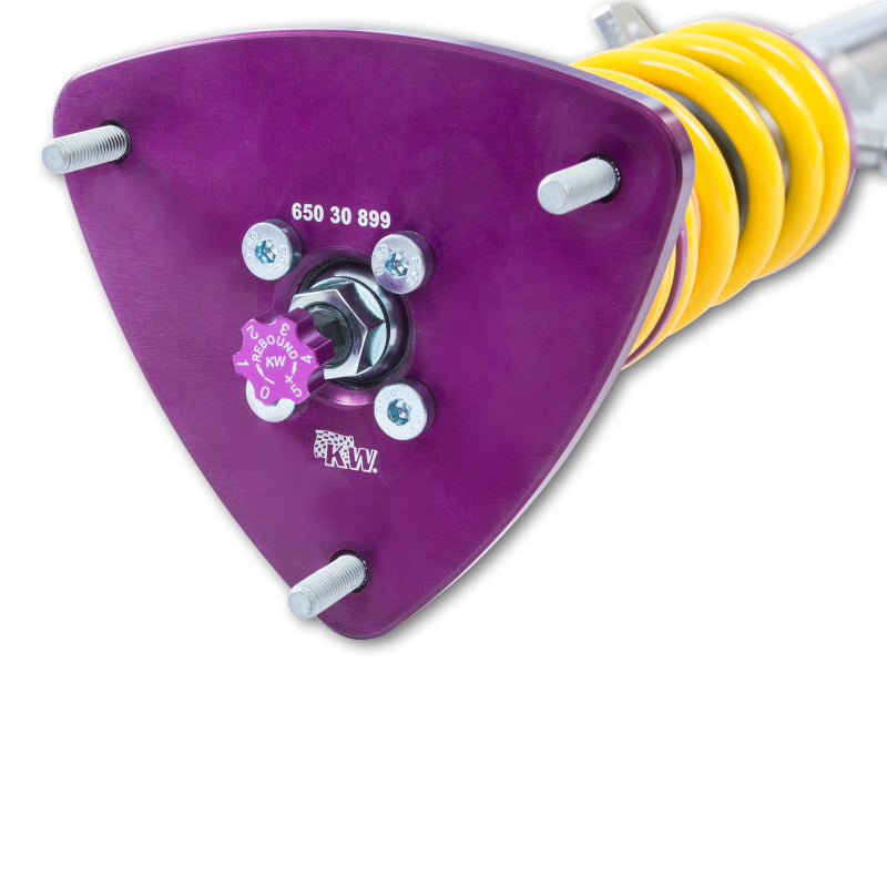 Designed to maximize the performance on vehicles with DOT-R and other ultra high-performance tire setups. KW V3 Clubsport coilovers are the ideal choice for double-duty street cars, use at HPDE's(high performance drivers education), time attack or time trials, and club level racing. The Clubsport setup was specially designed on the Nordschleife and the continuous adjustable ride height allows for fine corner weight or making setup changes. The TVR-A and TVC-A valve technology -provide an unmatched level of separately adjustable damping for the rebound and compression enabling a customized set up appropriate for the vehicle's modifications such as weight, tire characteristics, and other various conditions. The KW V3 Clubsport INOX-LINE coilover kit is the ideal tool for performance-oriented drivers and experienced tuning enthusiasts who place a strong emphasis on the overall performance of their suspension. The KW V3 Clubsport features patented TVR-A and TVC-A technology -hat provides separately adjustable rebound and compression damping. The extensive Adjustment -angle of the independently configurable rebound and compression make it easy to directly influence the steering behavior, directional stability, grip and handling characteristics for confident and repeatable results at the limit of driving dynamics.
