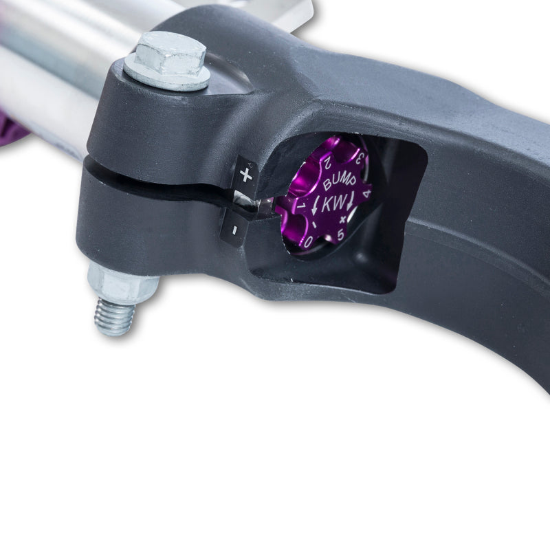 Cutting-edge motorsports technology for more performance on the road. Like every suspension product developed by KW automotive, the suspension manufacturer, and manufactured in Germany, the KW V3 Coilover suspension kit also provides a significant plus in safety reserves in road traffic. Thanks to the chassis with its high-quality dampers, springs, and elastomer spring elements, pitching and rolling movements during load changes such as evasive maneuvers, cornering, acceleration, and braking are significantly reduced. The braking distances are also shortened. Thanks to improved support and feedback, drivers not only feel safer but driving in everyday life becomes even safer. With compression and rebound stage damping, that can be set separately and independently of each other, the damper setup can be customized to your personal driving preferences or vehicle changes such as weight, tire characteristics, or altered vehicle rigidity. True performance optimization is only possible with this unique, patented system. For example, this allows the compression damping force to be increased and get more grip from the tires, to improve cornering behavior and reduce squat without simultaneously altering the rebound stage damping which is optimally matched to the spring rate, a scenario which results in reduced grip and the associated loss of performance. The KW V3 coilover kit is the ideal tool for performance-oriented drivers and experienced tuning enthusiasts who place a strong emphasis on the overall performance of their suspension. The Variant 3 features patented TVR-A and TVC-A technology that provides separately adjustable rebound and compression damping. The extensive adjustment range of the independently configurable rebound and compression make it easy to directly influence the steering behavior, directional stability, grip and handling characteristics for confident and repeatable results at the limit of driving dynamics.