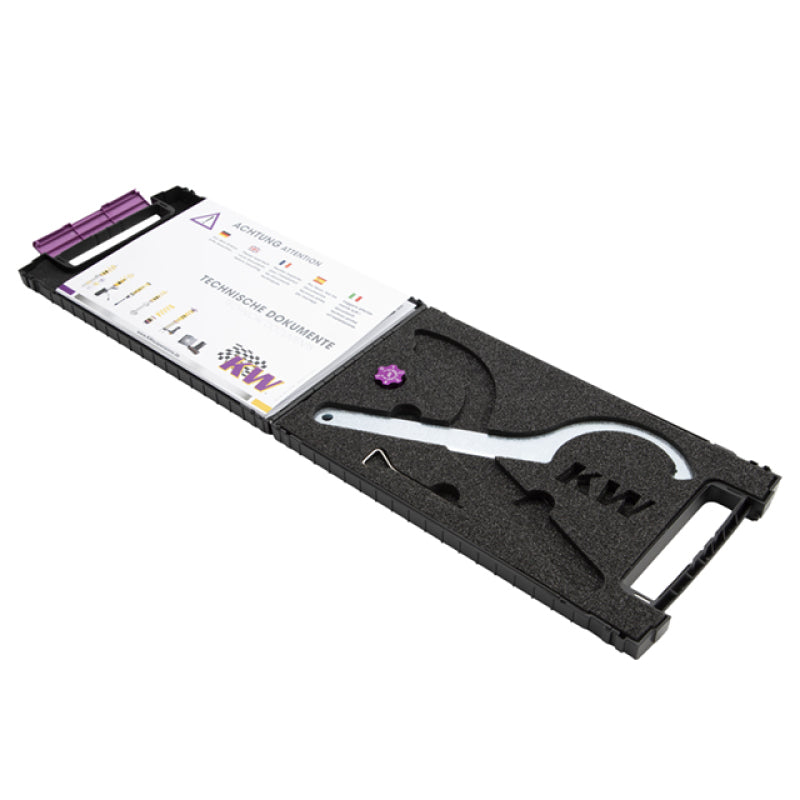 Cutting-edge motorsports technology for more performance on the road. Like every suspension product developed by KW automotive, the suspension manufacturer, and manufactured in Germany, the KW V3 Coilover suspension kit also provides a significant plus in safety reserves in road traffic. Thanks to the chassis with i ts high-quality dampers, springs, and elastomer spring elements, pitching and rolling movements during load changes such as evasive maneuvers, cornering, acceleration, and braking are significantly reduced. The braking distances are also shortened. Thanks to improved support and feedback, drivers not only feel safer but driving in everyday life becomes even safer. With compression and rebound stage damping, that can be set separately and independently of each other, the damper setup can be customized to your personal driving preferences or vehicle changes such as weight, tire characteristics, or altered vehicle rigidity. True performance optimization is only possible with this unique, patented system. For example, this allows the compression damping force to be increased and get more grip from the tires, to improve cornering behavior and reduce squat without simultaneously altering the rebound stage damping which is optimally matched to the spring rate, a scenario which results in reduced grip and the associated loss of performance. The KW V3 coilover kit is the ideal tool for performance-oriented drivers and experienced tuning enthusiasts who place a strong emphasis on the overall performance of their suspension. The Variant 3 features patented TVR-A and TVC-A technology that provides separately adjustable rebound and compression damping. The extensive adjustment range of the independently configurable rebound and compression make it easy to directly influence the steering behavior, directional stability, grip and handling characteristics for confident and repeatable results at the limit of driving dynamics.
