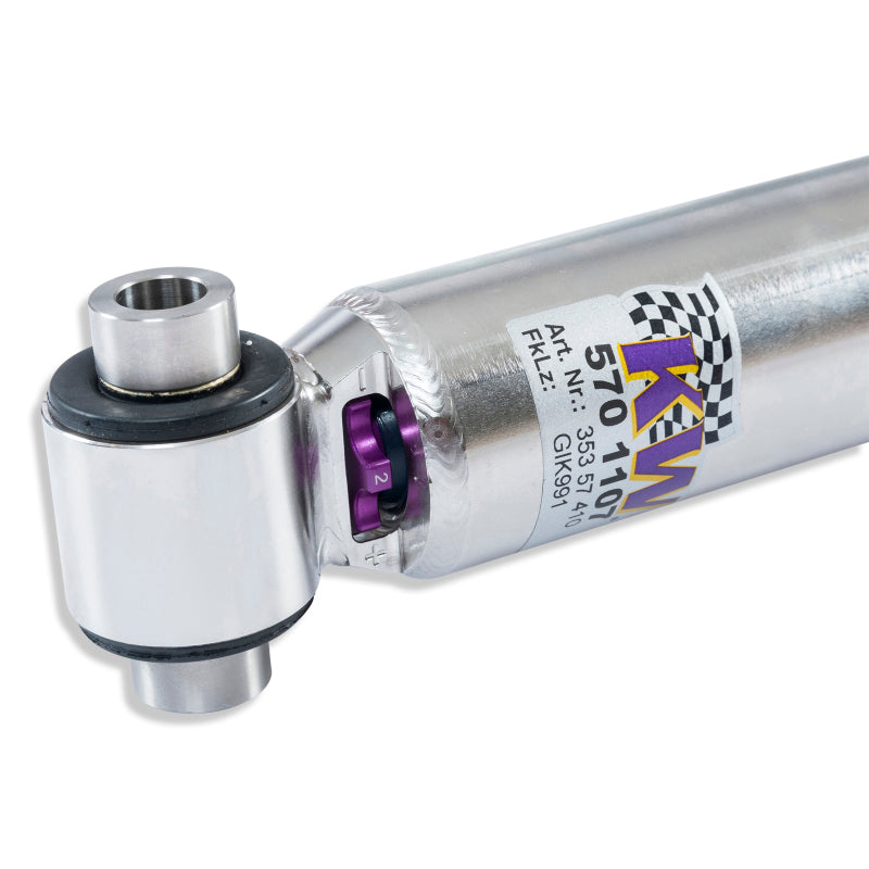 Cutting-edge motorsports technology for more performance on the road. Like every suspension product developed by KW automotive, the suspension manufacturer, and manufactured in Germany, the KW V3 Coilover suspension kit also provides a significant plus in safety reserves in road traffic. Thanks to the chassis with its high-quality dampers, springs, and elastomer spring elements, pitching and rolling movements during load changes such as evasive maneuvers, cornering, acceleration, and braking are significantly reduced. The braking distances are also shortened. Thanks to improved support and feedback, drivers not only feel safer but driving in everyday life becomes even safer. With compression and rebound stage damping, that can be set separately and independently of each other, the damper setup can be customized to your personal driving preferences or vehicle changes such as weight, tire characteristics, or altered vehicle rigidity. True performance optimization is only possible with this unique, patented system. For example, this allows the compression damping force to be increased and get more grip from the tires, to improve cornering behavior and reduce squat without simultaneously altering the rebound stage damping which is optimally matched to the spring rate, a scenario which results in re duced grip and the associated loss of performance. The KW V3 coilover kit is the ideal tool for performance-oriented drivers and experienced tuning enthusiasts who place a strong emphasis on the overall performance of their suspension. The Variant 3 features patented TVR-A and TVC-A technology that provides separately adjustable rebound and compression damping. The extensive adjustment range of the independently configurable rebound and compression make it easy to directly influence the steering behavior, directional stability, grip and handling characteristics for confident and repeatable results at the limit of driving dynamics.