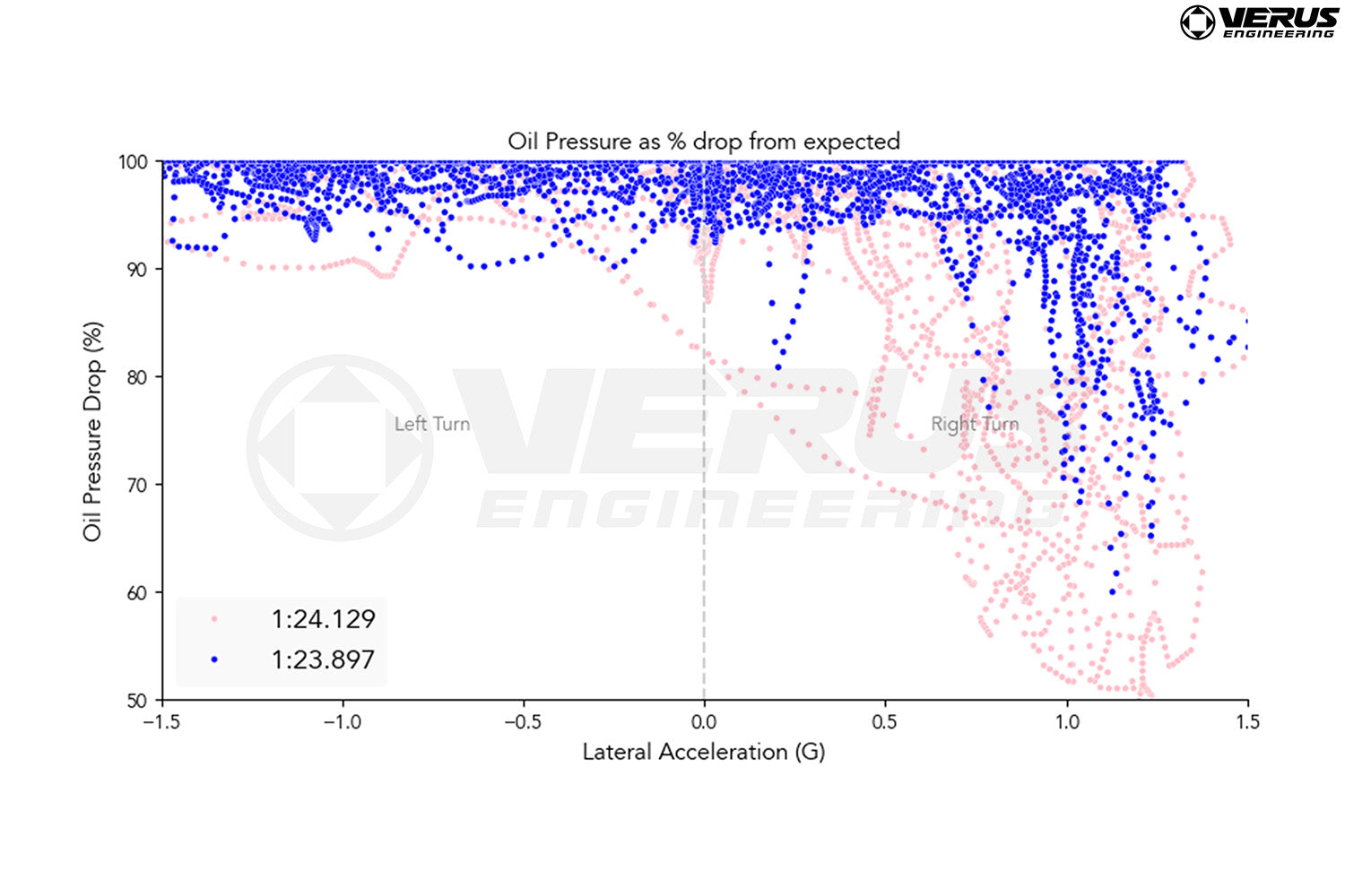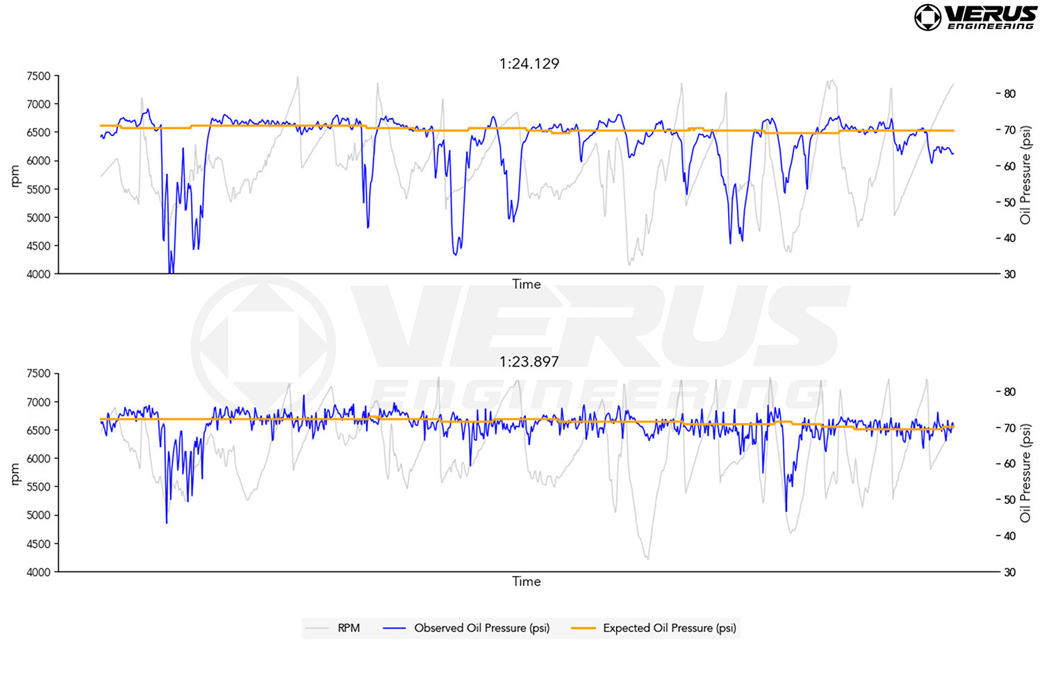 Through our own on-track data as well as data from many test users, we saw pressure drop as low as 23 PSI with the OEM pan installed. Once our pan was installed, we found it to work very well on the car, keeping pressures more stable and dramatically reducing the potential for premature bearing wear or outright engine failure due to oil pressure loss. Interested in learning more? Interested in learning more? Check out our data video below!